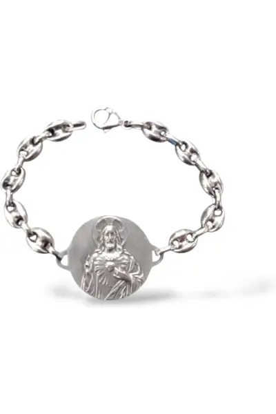 • Pulsera escapulario en plat  Virgen del Carmen y Sagrado corazón. Grande