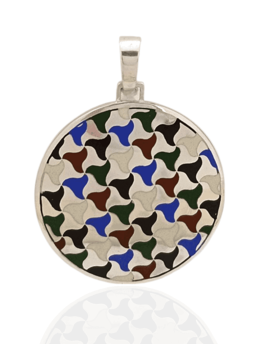 Descubre la elegancia del Colgante Legado Andalusí, una joya artesanal elaborada en plata de ley y decorada con esmalte a fuego, una técnica tradicional que aporta color, brillo y durabilidad.