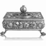 Caja joyero realizada en plata con granadas en los laterales y en la tapa granada corporea