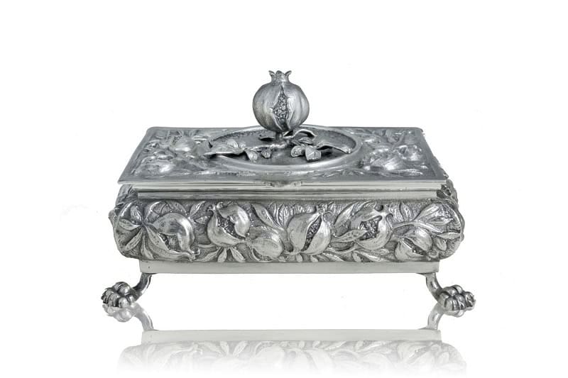 Caja joyero en metal plateado con motivos de granadas
