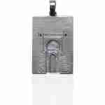 Colgante rectangular en plata de ley con relieve de la Puerta de la Justicia de la Alhambra, destacando su icónico arco de herradura. Montado en cordón negro, combina un diseño sencillo y elegante con un fuerte valor histórico y cultural. Cordón de caucho no incluido en el precio.