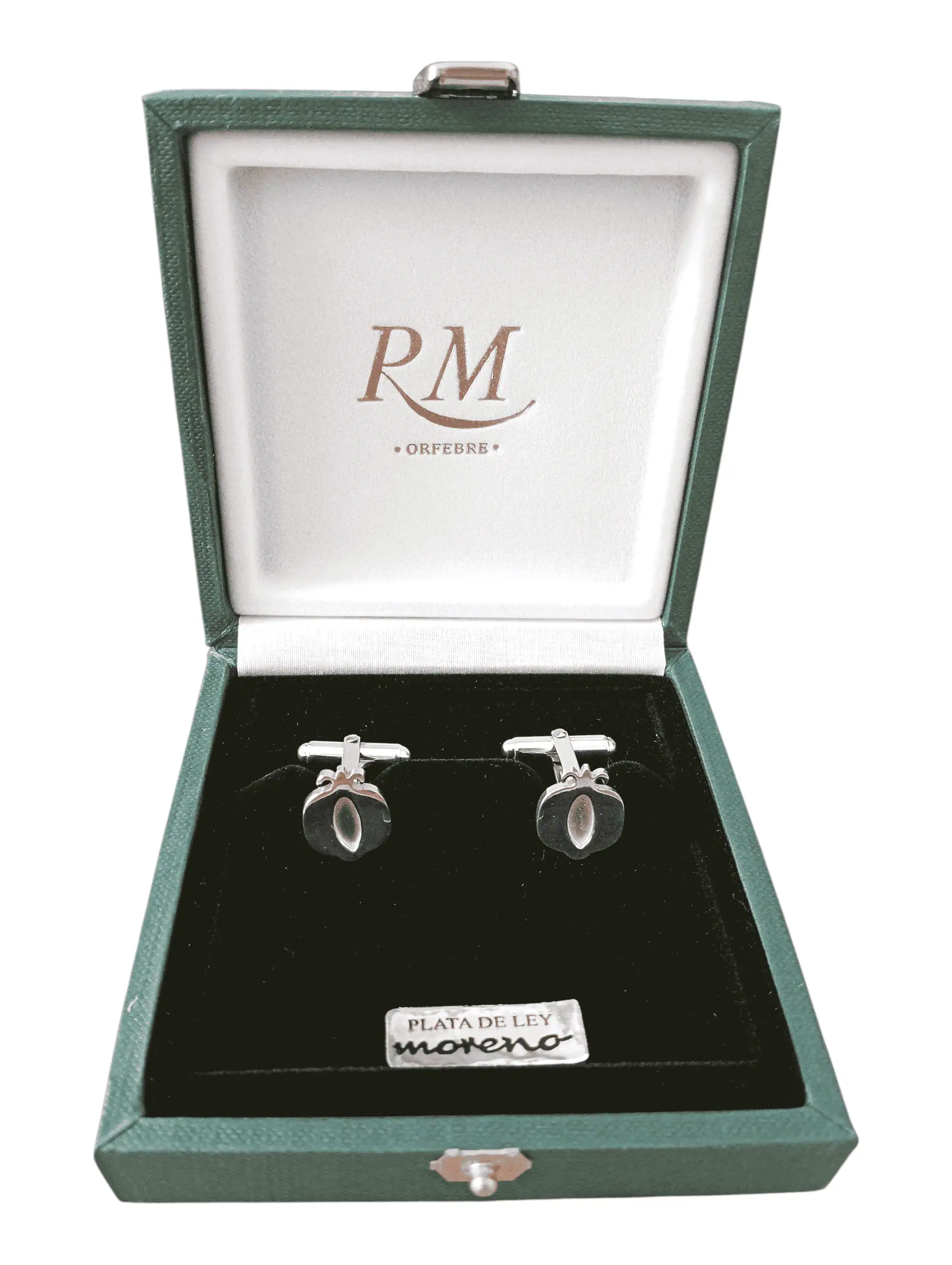 Gemelos en plata de ley con forma de granada redonda