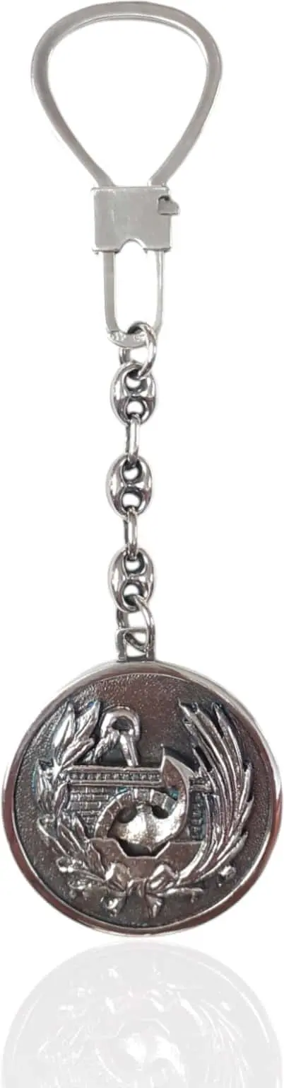 Llavero en plata de ley con motivo profesional de ingenieros de caminos, canales y puertos