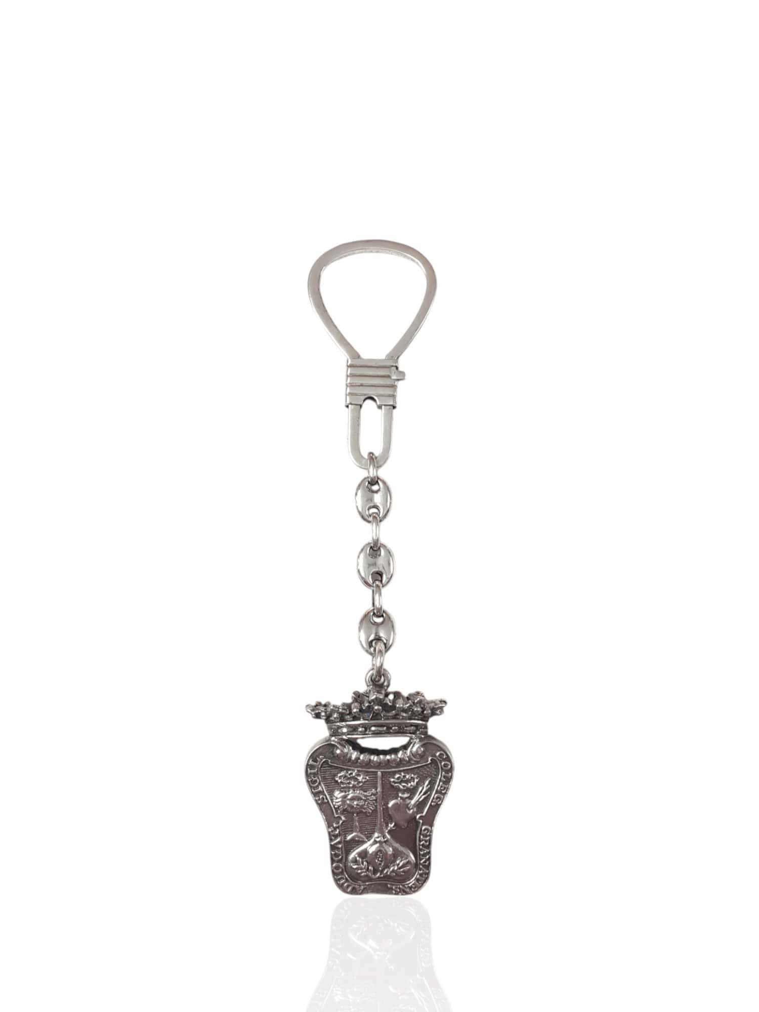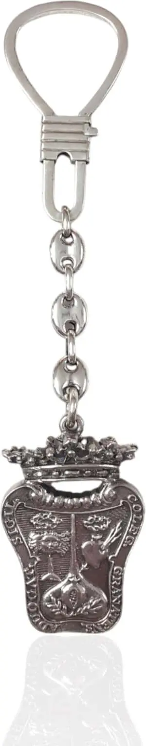 Llavero en plata con motivo profesional del colegio de abogados de Granada