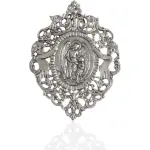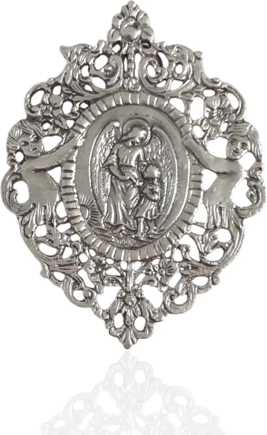 La medalla de cuna de plata con el ángel de la gaurada en el centro de la medalla, realizada en los reconocidos talleres de Arte Moreno, combina tradición, artesanía y calidad. Cada pieza está elaborada en plata de ley, con un acabado cuidadosamente trabajado que resalta la figura del ángel protector, símbolo de cuidado y bendición para el bebé.