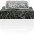 Pisapapeles Alhambra plateado sobre base de mármol verde. Elegante accesorio de escritorio con diseño detallado en relieve de la Alhambra de Granada, elaborado en metal plateado. Ideal como regalo corporativo, souvenir de lujo o decoración de oficina. Este pisapapeles combina arte, historia y funcionalidad, destacando por su acabado artesanal y materiales de alta calidad. Añade un toque cultural y sofisticado a tu espacio de trabajo con este exclusivo pisapapeles inspirado en la emblemática fortaleza nazarí de Andalucía.