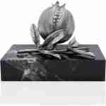 Granada que combina un cuerpo plateado con los granos brillantes de cristal de Swarovski, montada sobre una base de mármol marrón pulido que aporta estabilidad y contraste. Una pieza decorativa sofisticada que une lujo y tradición en un diseño único.