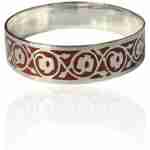 La estructura de plata, firme y pulida, ofrece un borde limpio que enmarca los motivos esmaltados y acentúa el carácter artístico de la pieza. Su forma rígida garantiza una presencia sólida y sofisticada en la muñeca, mientras que el diseño entrelazado de las granadas aporta un toque simbólico de fertilidad, abundancia y tradición.